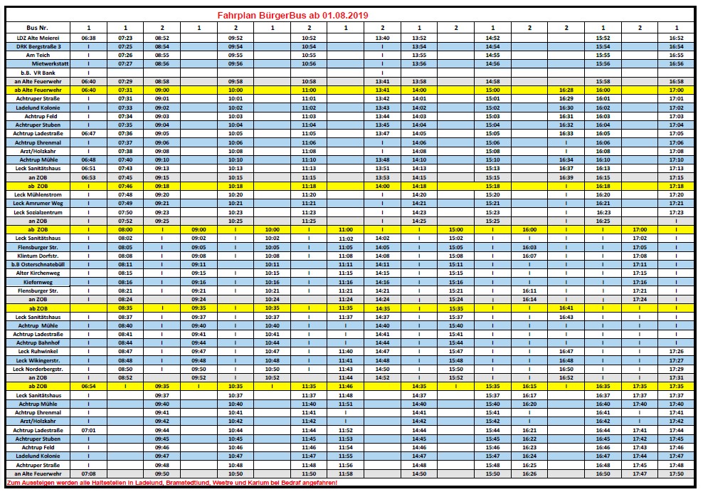 Fahrplan Linie 1012b (Ladelund – Süderlügum – Ladelund) –  gültig ab 01. August 2019